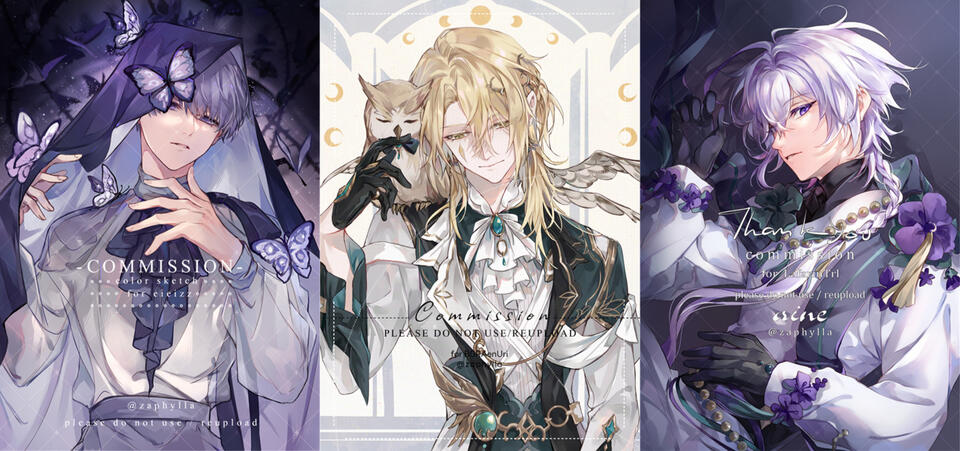 ขั้นตอนการทำงานคอนเฟิร์มงาน > ชำระเงิน > เริ่มงาน > ส่งเช็คงาน > เสร็จงาน★ เนื่องจากเป็นสเก็ตช์คอมมิชชั่นจึงไม่มีการส่งภาพร่างแรก / หากต้องการเห็นร่างคร่าวๆ รบกวนแจ้งก่อนนะคะ ภาพจะรัฟมากพอสมควรค่ะ